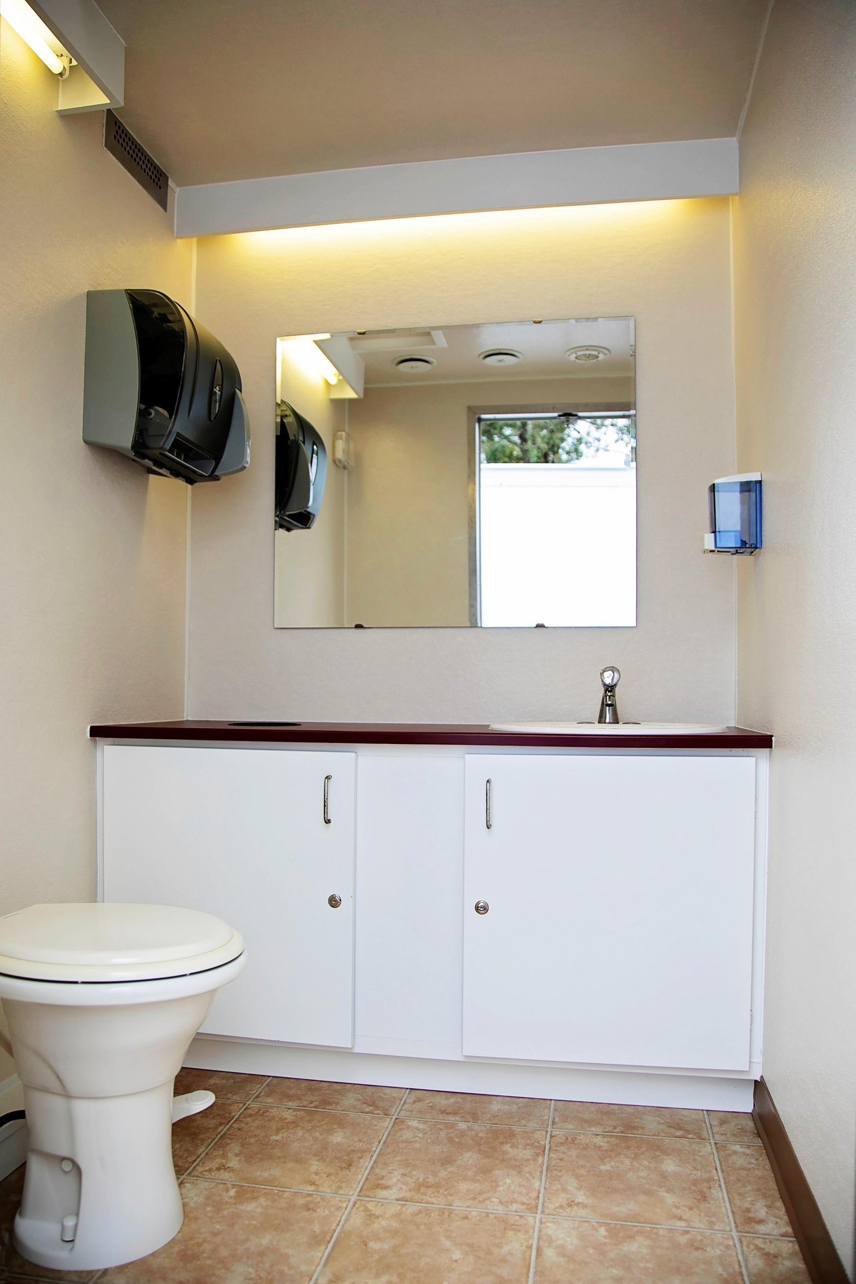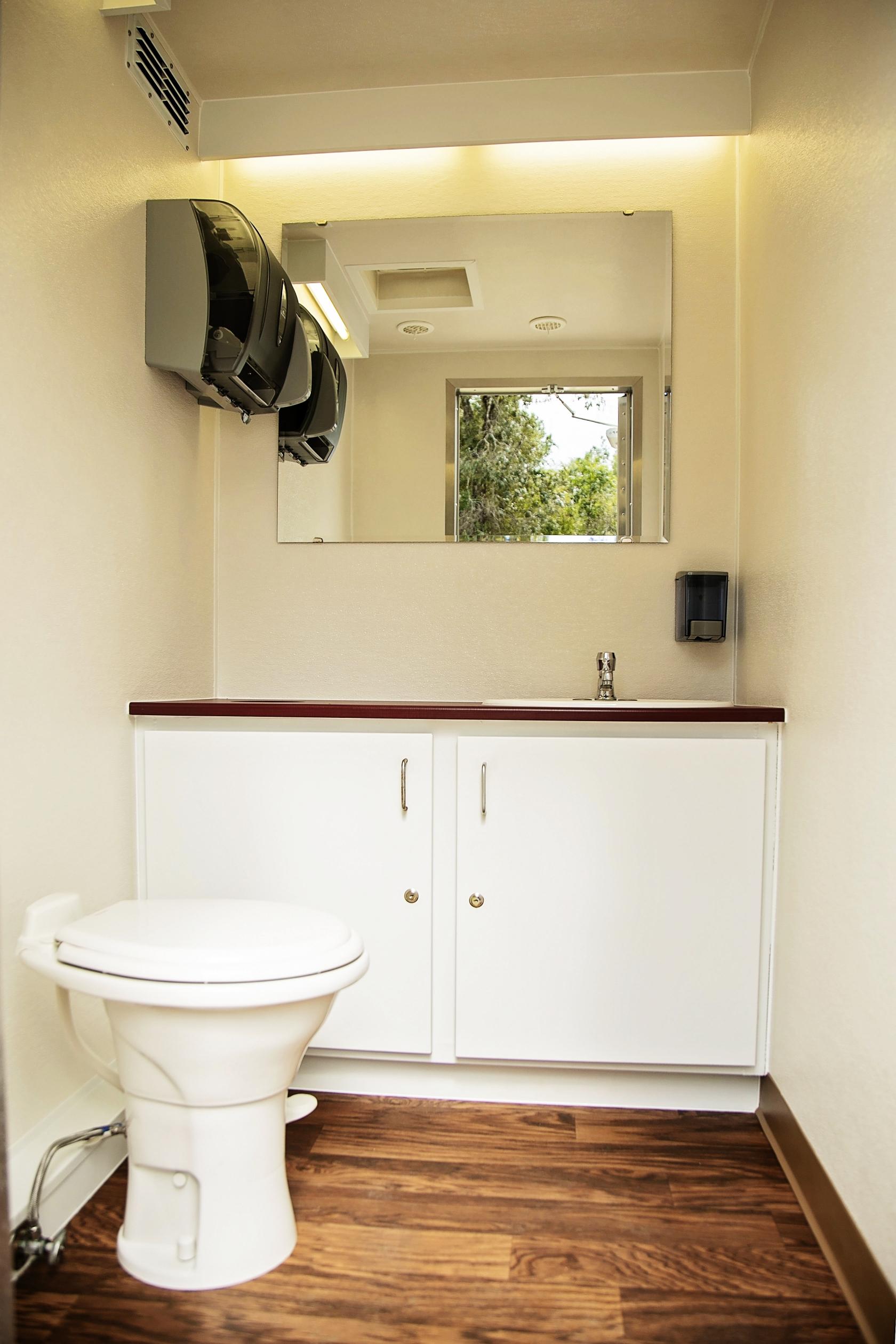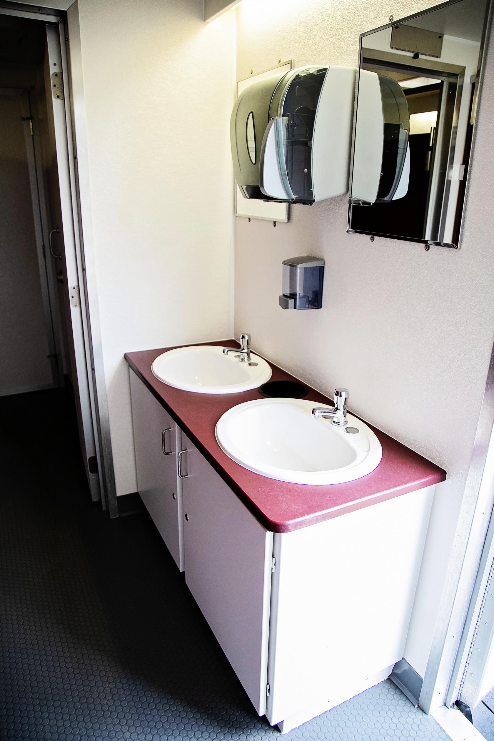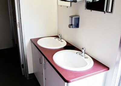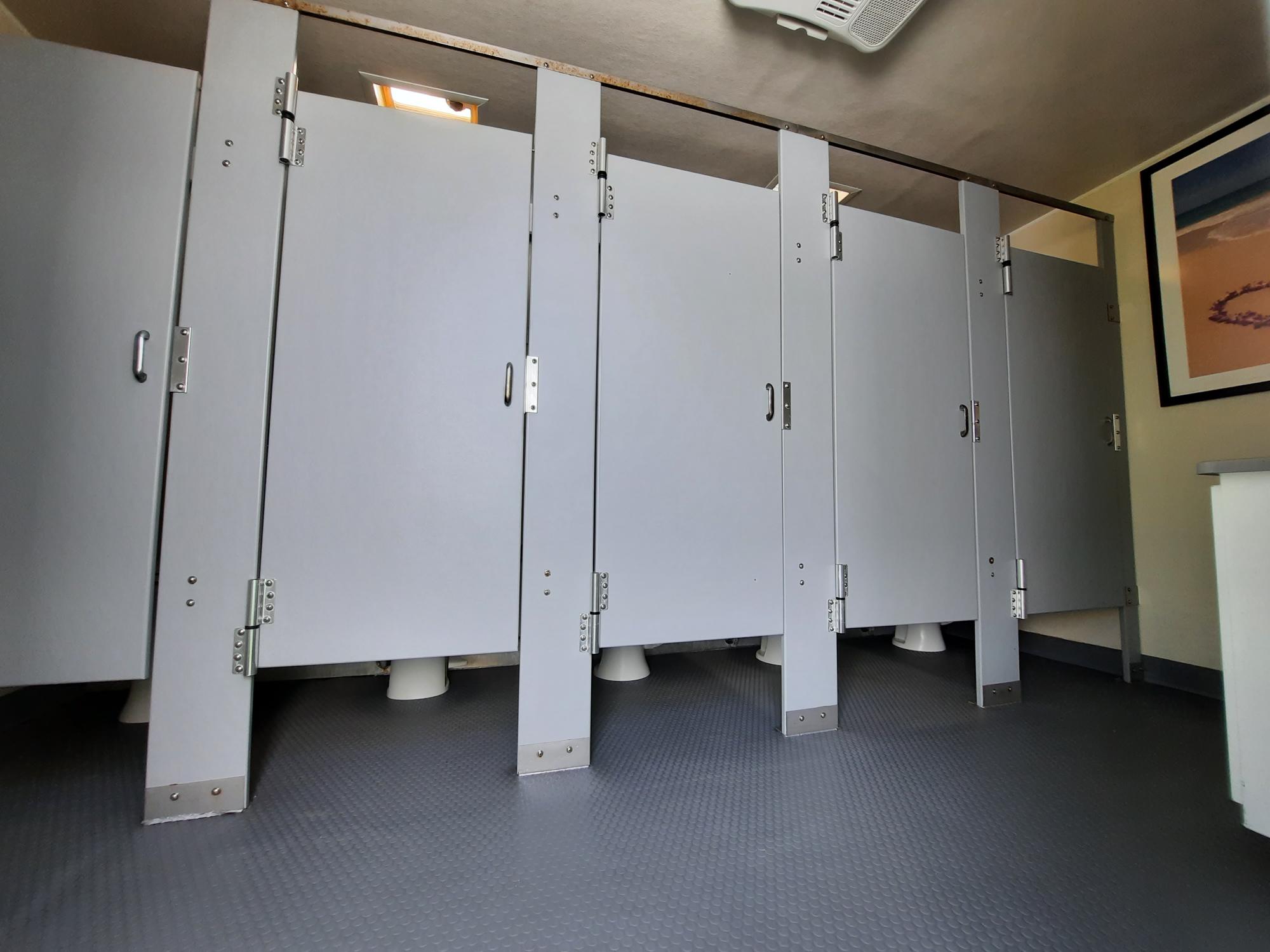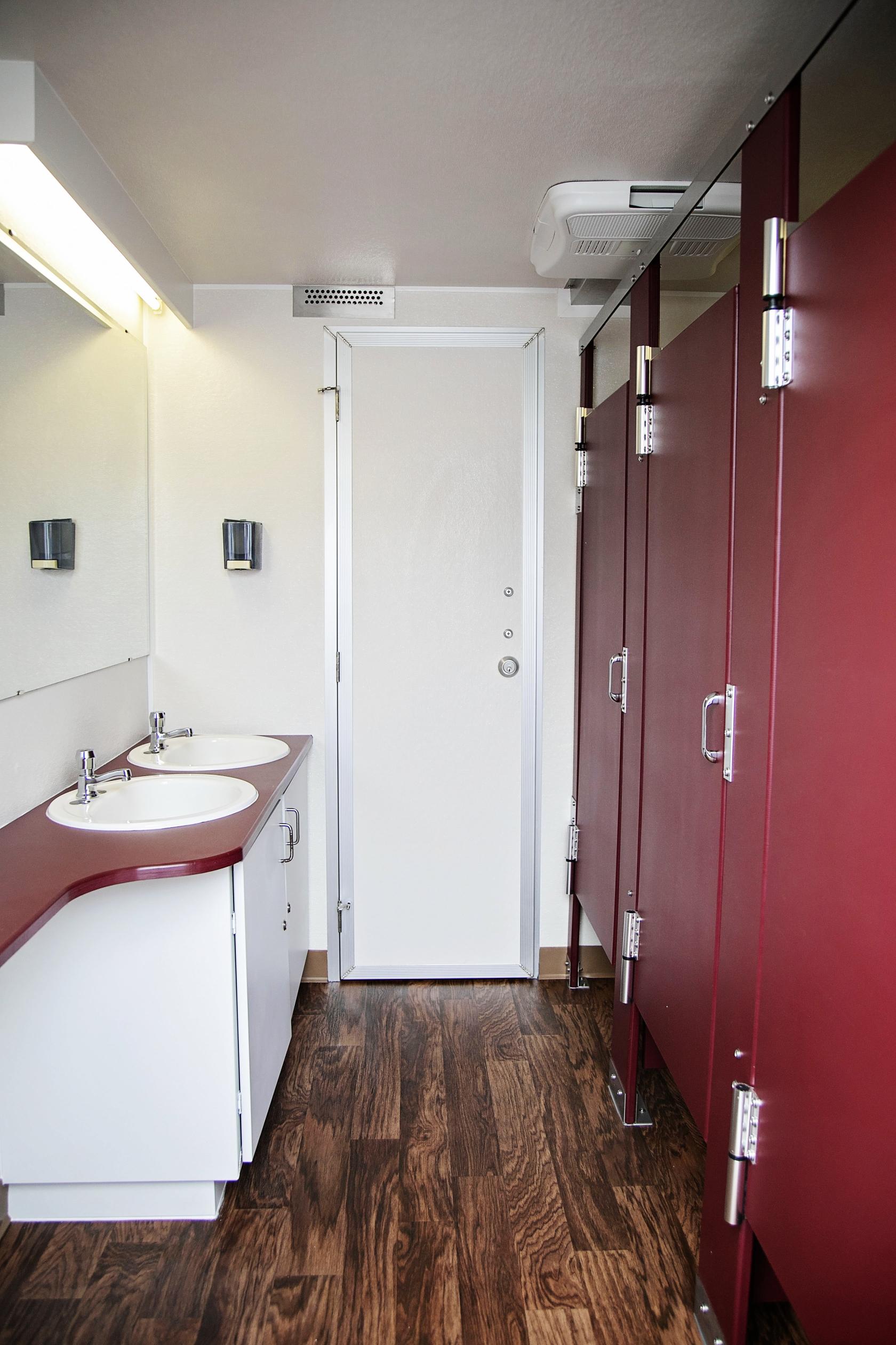 Our commercial restroom trailers are a clean and reliable option for busy spaces like construction sites, retail stores, large events, or emergency situations. These trailers are durable and made to handle a lot of use. Each trailer has multiple stalls, real sinks with running water, flushing toilets, and air conditioning or heat. They give workers or guests more comfort compared to regular porta-potties. If you need restroom facilities that are reliable, comfortable, and easy to set up, our commercial trailers are a great choice.